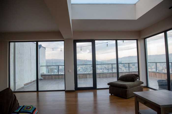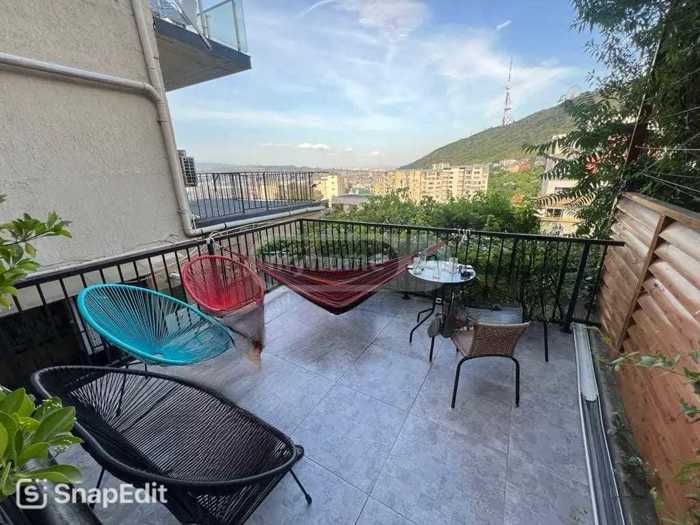 I am the owner. The apartment is currently for rent. Brokers do not copy the ad! I will give preference to a buyer who wants to purchase the apartment for investment purposes. For sale is a loft-type apartment in a newly built, non-standard house. Upper Vake, a sunny, airy, and quiet street. The total area of the apartment is 105 sq.m. and it is located on the fifth, top floor (no additional construction allowed. The roof is solid!) The apartment has one bedroom and a studio-type living room, which ensures a comfortable and cozy environment. The apartment has a large balcony with pleasant views of the entire city - there is no possibility of a building being constructed in front.