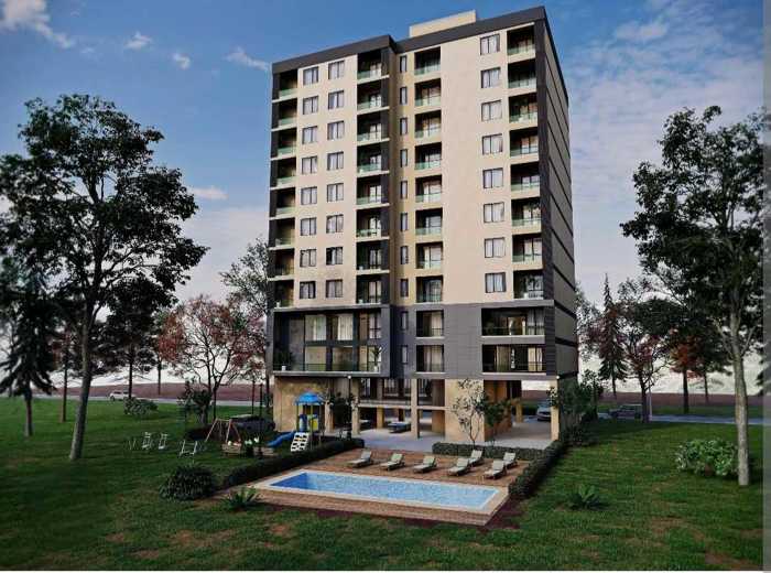 For sale is a 3-room apartment in a newly built building. It is for sale with furniture. The building is constructed by Aka. Please contact us for details.