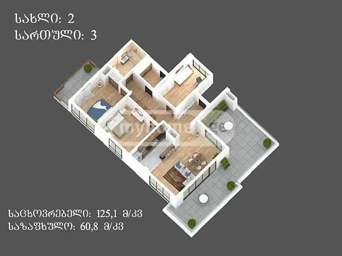 A three-room apartment is for sale in Ortachala, on Krtsanisi Street. In the Tbilisi Hills Golf & Residences complex. The complex consists of 5,000 residential units located on 331 hectares, and an 18-hole professional golf course. And a closed parking space. Located on the 2nd floor of a new building with 4 floors. Total area: 116 m2. Newly renovated, studio-type kitchen, living room, 2 bedrooms, 1 bathroom, balcony, and a terrace of 12 m2. Central heating is installed. The apartment is sold with furniture and appliances. Price: 355,000 USD.