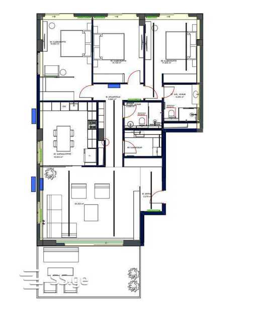 For sale is a 205 sq.m. four-room apartment on the second floor in a new premium building "Lisi Garden House" on Lisi Veranda, with corner three-sided lighting, bright, with views, in green frame condition (electricity, interior partitions plastered, air conditioning pipes installed, heating boiler mounted and pipes laid, aluminum doors and windows, marble tiles on the balcony). The apartment has three bedrooms, three bathrooms, a large veranda, and one balcony.
