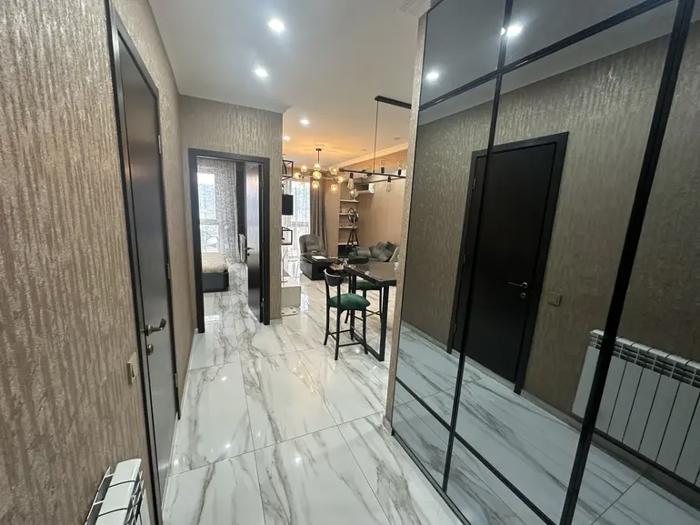 For sale urgently a newly built, very bright, cozy and beautiful apartment, with top quality renovation, appliances and furniture. The apartment is located in an ecologically clean area with beautiful views. There are schools, cafes, a sports hall, shops, and a city mall nearby. The apartment has a walk-in closet and a separate kitchen. I am the owner, and please contact me only if there is a real client.