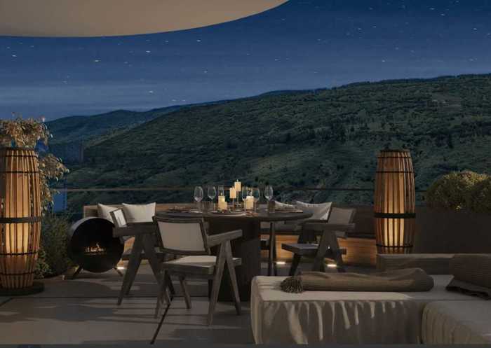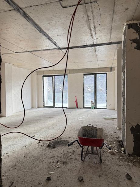 Apartment for sale in a completed premium class complex. The apartment has an area of 173 sq.m., has two bedrooms (an additional third bedroom can be added), two bathrooms, a laundry-storage room, and beautiful views towards Tsqaltubo. The apartment is green + frame, which implies the following: a heating boiler with piping, storage rooms for the heating boiler and external units for conditioning, energy-efficient aluminum outer doors and windows, an entrance door finished with MDF, leveled floor, plastered walls, connected utilities (gas, water, electricity), electrical wiring in the rooms according to the layout, an intercom system and video phone, and finished terraces with frost-resistant granite. You can also purchase an additional 2 parking spaces. The price for 1 parking space is $15,000, and for both together, it is $23,000.