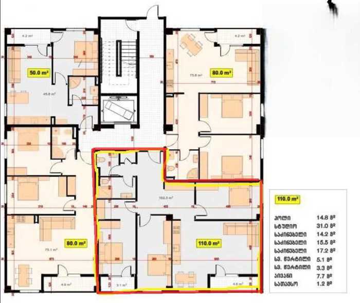 The building on the ascend of Makhatta is Army City Building 2. Near the main entrance. On the 7th floor, I’m at the 5th floor. The building has one entrance. 110 sq.m. The project is designed for three bedrooms. Two bathrooms. 2 balconies. 10 sq.m basement. The basement doors and finishing are done as per the common project up to 1000 Lari. Yard lighting is free, garbage collection is free. Parking is free for one car. "That's how it is in every military city," the municipality serves even in Varketili. The entrances are decorated. There are 2 passenger lifts and 1 freight lift in the building. Video control. The building has a cleaner. All of this costs 130 Lari per month.