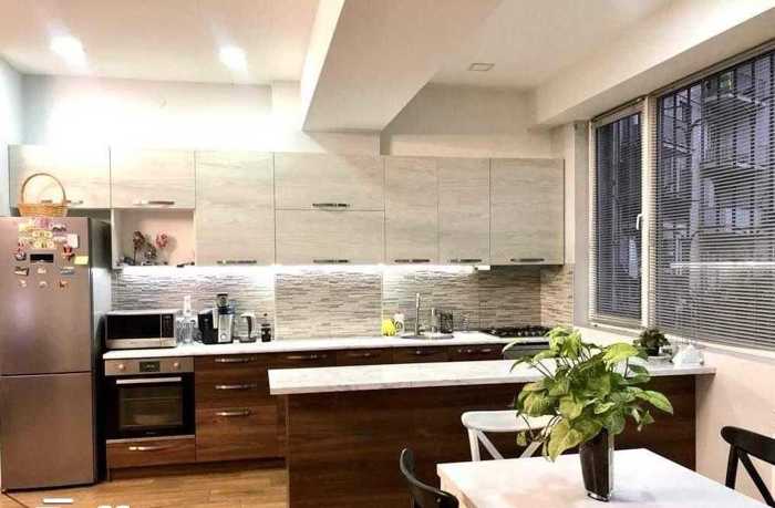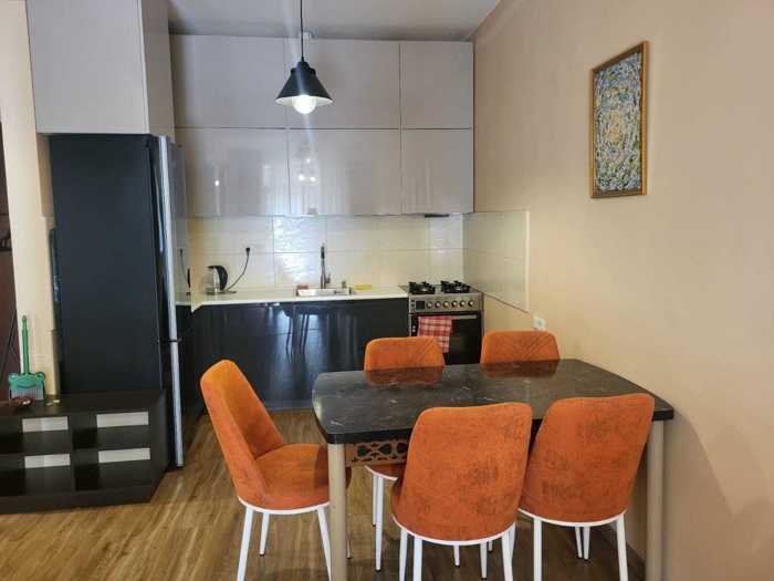 |Vake. Rustaveli. N. Jvania 55. For more detailed information, for the video, write to us on WhatsApp or Telegram, send us the apartment link and we will help you quickly. Write is better than calling. For sale in a new building, 5th floor, 56.4 m2, bedroom with a French balcony, studio-kitchen, bathroom with shower, new designer renovation, built-in kitchen cabinets, panoramic windows, fully equipped corner apartment with all necessary furniture and appliances. Includes gas stove, oven, refrigerator, washing machine. Air conditioner, TV, soft furniture, bedroom furniture. $169,500.