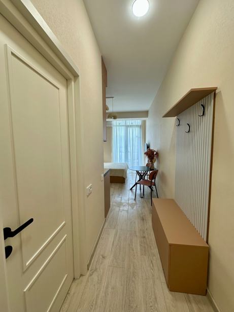 For sale is a newly built, 1-room hotel project type apartment on the 12th floor of an 18-story building. The total area of the apartment is 25 sq.m, which is ideal for investment. The apartment has one bright balcony with a view of the Mtkvari River. The apartment is equipped with Midea appliances, only the TV is Samsung. There is 12mm thick 33 class laminate, painted with Japanese washable paint, MDF skirting boards, Spanish tiles.