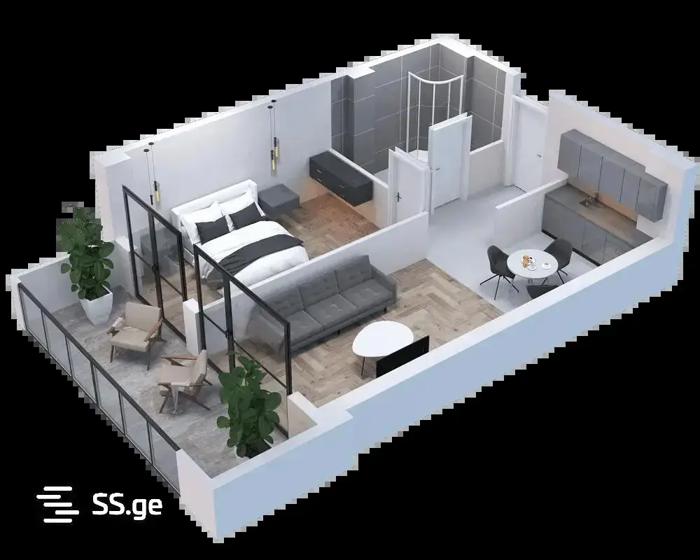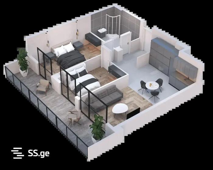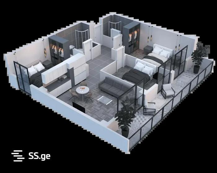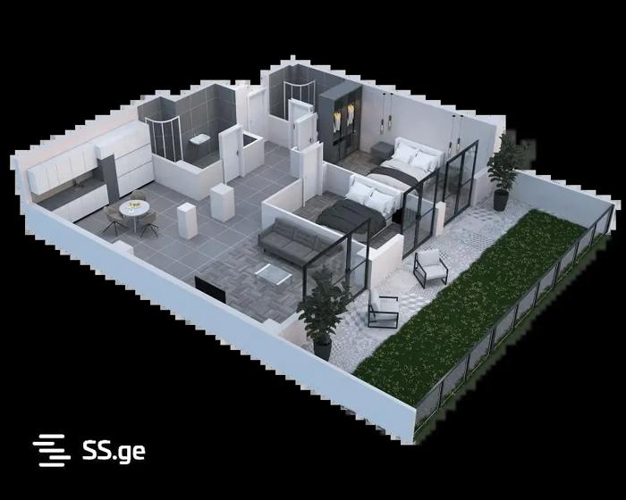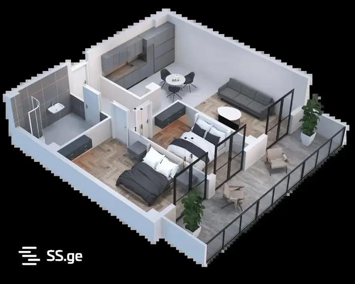 For sale a 69 m² apartment in Ortachala, in a newly built building. Ortachala is one of the fastest developing and most in-demand neighborhoods in Tbilisi, which ideally combines proximity to the city and a quiet, green environment. There is a developed infrastructure here, from where you can easily reach the city center. Parks, schools, kindergartens, supermarkets, cafes and all necessary facilities for a comfortable and modern living are nearby.