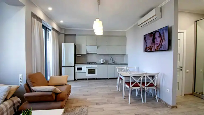 |The apartment is located on Krtsanisi Street, in an ecologically clean environment, in a newly constructed, prestigious residential complex, with 2 isolated bedrooms, an isolated kitchen, 2 bathrooms, and a large square in front of the building. With private parking (for an additional fee), it is an ideal option for both living and investment.