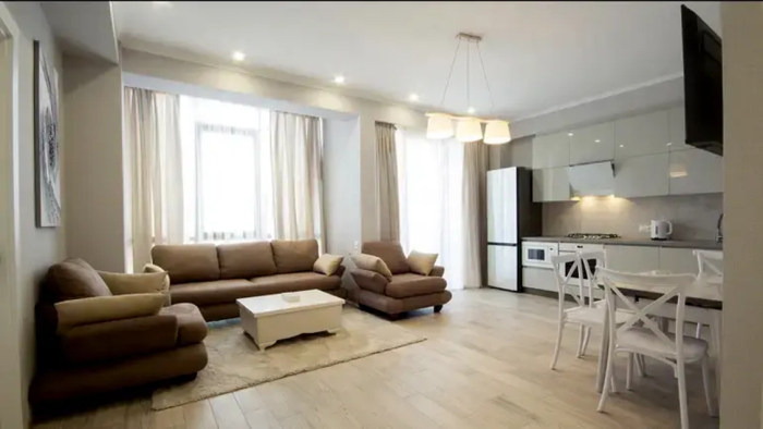 For sale a bright, airy, and cozy 3-room apartment in the prestigious neighborhood of Krtsanisi, in a newly built building. The total area of the apartment is 117 sq.m, it has 2 bedrooms, a living room, a storage room, and balconies. The apartment is located in a building constructed to modern standards. With functional planning. For family comfort, it is integrated with an Italian kitchen with built-in appliances, parquet flooring. The apartment is sold fully furnished — everything shown in the photos remains. For more information, contact us:
