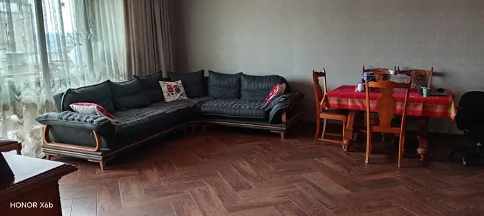 For sale: renovated clean apartment, furnished and equipped with appliances. Located in Gldani II, a 5-minute walk from Akhmeteli Metro station. The apartment is situated in a quiet, green neighborhood, and the building has a new elevator. Price per sq.m is $1,600; the apartment is sold on the condition that the owner remains in the apartment for the next year and pays rent of $450 monthly. (The rental condition after 1 year is negotiable). All furniture and appliances remain in the apartment.