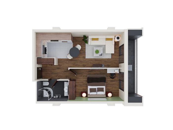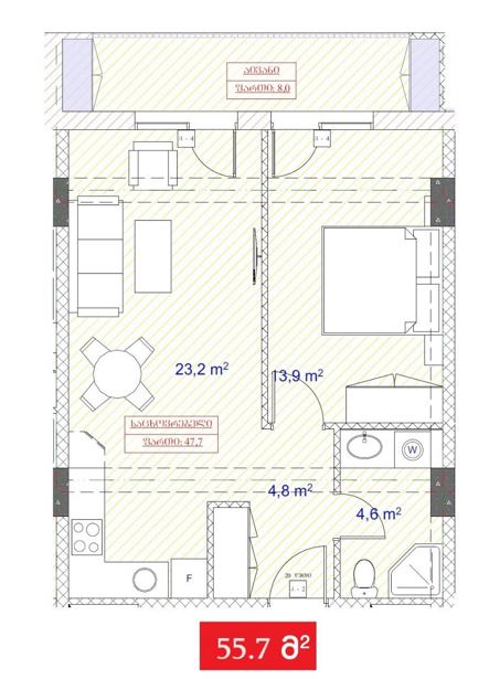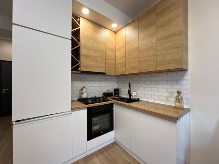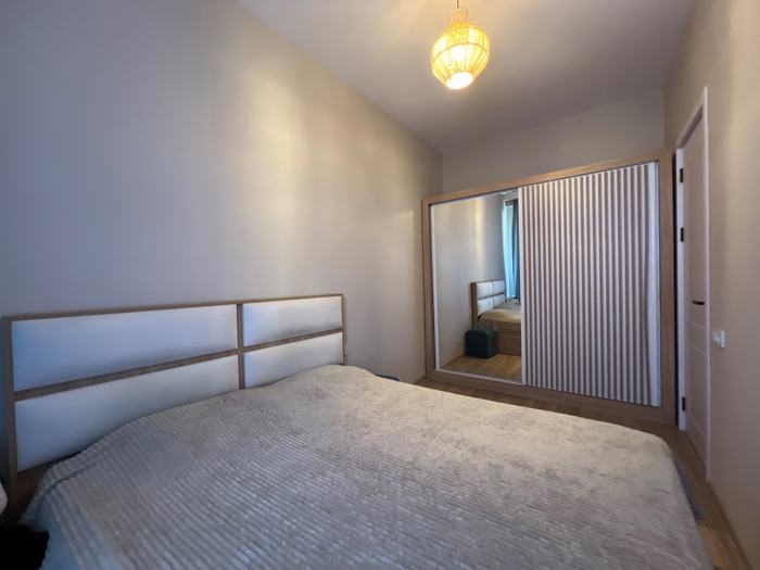 45 sq.m studio with a separate bedroom. Well renovated, furnished, and equipped. Ideal for both living and rental purposes. The buildings are in a modern style with a facade made of red bricks; it is a cozy and quiet neighborhood with an ecologically clean environment. Close to Madart and Kikvidze Park. Also nearby are Carrefour, the shopping center “Saba”, “McDonald’s”, and the metro Gociridze/Didube, along with other necessary facilities