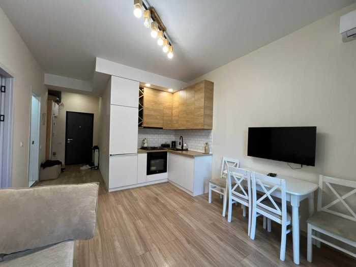 Do not call the agencies. A 2-room apartment is for sale in the Nazaladevi district, on Chola Lomtatidze Street. 5th floor of a 12-story building, 45 sq.m studio with a separate bedroom, with new modern renovation, furnished and equipped with appliances. Ideal for both living and renting out. The buildings are in a modern style, with a facade decorated with red brick, it is a cozy and quiet neighborhood, with an ecologically clean environment.