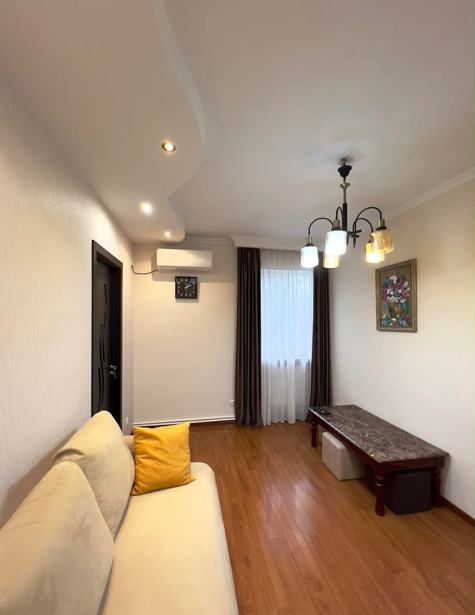 For sale: a three-room renovated apartment in Nazaladavi district, on Samghereti street, 10 minutes away from the transfer bridge, 42 sqm, has 2 small bedrooms with secondary lighting, part of the furniture remains, 4th floor Price: $66,000 Phone: 574 472244