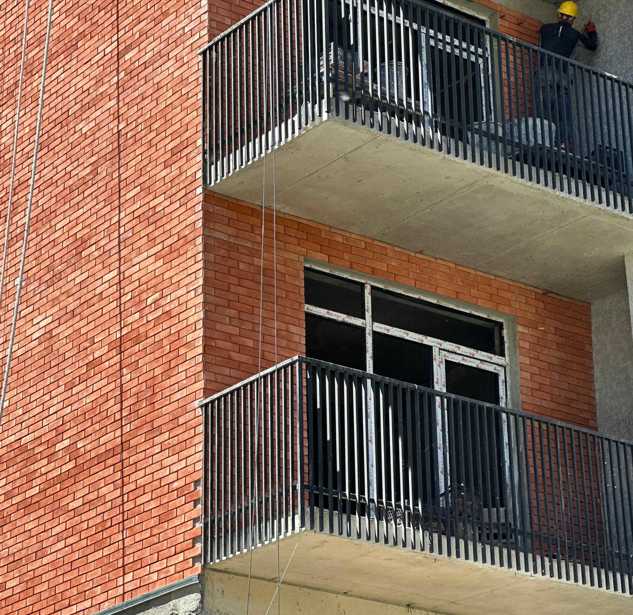 For sale, under the condition of a green frame, on Demetre Tavdadebuli Street. A view in a building constructed by a developer. The finishing of the facade and entrances is in progress. Electrical work and plumbing are being done in the apartments. Renovation can begin already.