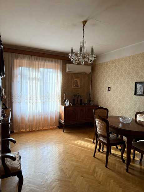 The apartment is located on Chkhondideli Street, near Kikvidze Park and the Gociridze Metro station. It is a Kavalashvili project (79.9 sq.m.), with 2 isolated bedrooms, an isolated kitchen, furnished and equipped with appliances. The apartment is pass-through, bright, sunny, and cozy. The plumbing has been replaced, and the parquet has been refined. It has its own capital garage (at an additional cost), and the elevator has been recently replaced.