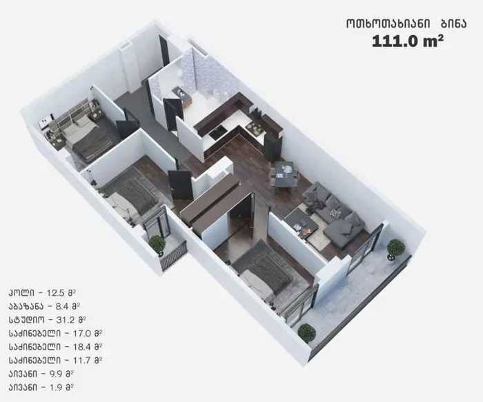 For sale: in Didgomi, 26 Parnavaz Mepe Street, in the Arkisi Complex, D block on the 15th floor, a 51 sq.m. 2-room newly renovated premium class studio apartment with high-quality furniture and appliances. Everything remains in the apartment. The apartment has a large balcony and a view towards the yard. The complex has security systems, fire/video cameras, security, and a chip entry for the entrance door. The entrance is well-equipped with 2 freight and 1 passenger elevator. Price: $98,000 Phone: 595161707 Jaba