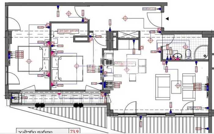 Duplex for sale, at the beginning of Vashlijvari, 300 meters from the monument of David the Builder, on the first and second floors of a 6-story house, with a living room, 4 bedrooms, a balcony, two bathrooms, built-in wardrobes, a yard, 125 sq.m. with central heating, it is possible to separate the first and second floors.