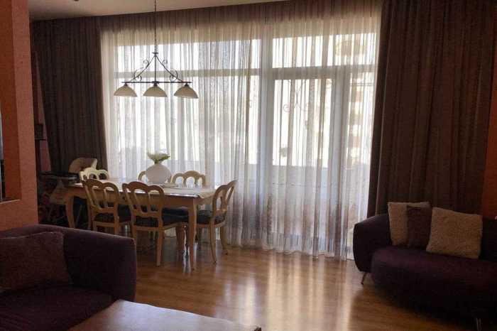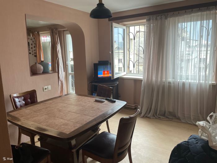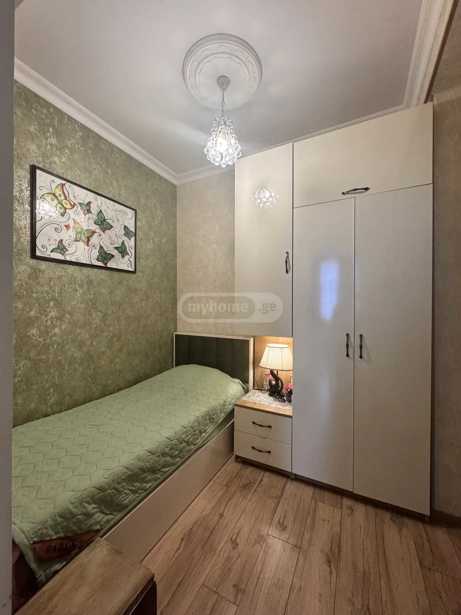 A very beautiful, bright, and comfortable apartment is for sale in Didube at the intersection of Tevdore Mghvdel and Pifia. It is a 5-minute walk from the Tsereteli metro and the Pantheon. The apartment has just been renovated, with new furniture and new appliances; it is ready for living even with the smallest details taken into account. The building materials and everything else are of high quality. The mattresses are also orthopedic and of good quality. I am the owner. I bought it and renovated it for myself. I am a designer and worked wholeheartedly on this apartment for months. My plans changed, and I am selling it. Everything remains in the apartment, except for two chandeliers, the entrance mirror, and decorations. The building has a well-maintained entrance and a green courtyard with a stadium and workout equipment. The balcony of the apartment is quite large and has a storage room as well. Interested parties should contact me. The price is negotiable.