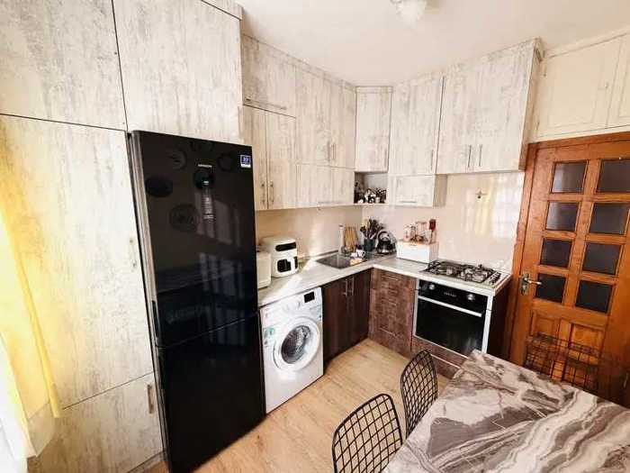 For sale, a 75 square meter apartment in Didube, on Samtredia Street, behind the exhibition. A three-and-a-half room apartment with a separate kitchen, two bright bedrooms, and a balcony. All rooms have lighting. It is very cozy and bright, without any extensions. The apartment has a very nice inner yard with stadiums and a kindergarten. The bedrooms face Agali, and all the markets, pharmacies, and schools are nearby. The price is negotiable.