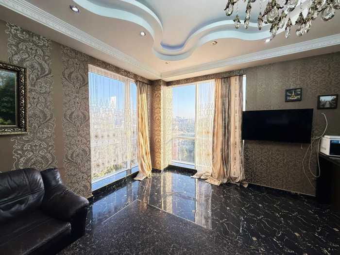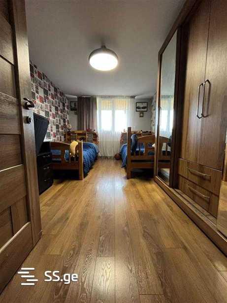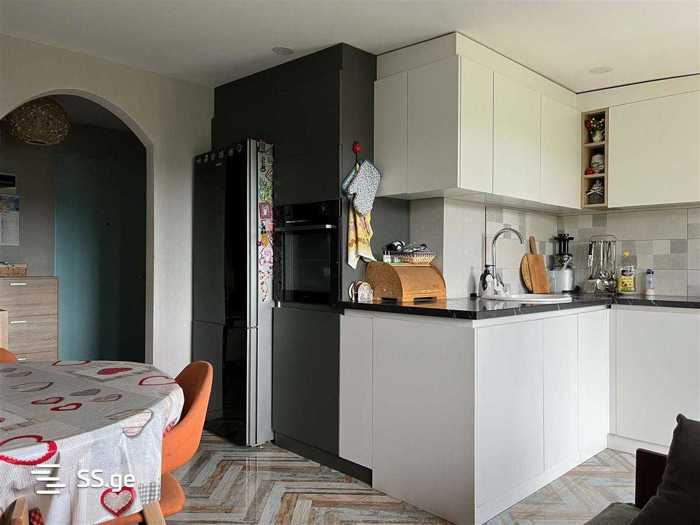 For sale 5-room apartment with 3 bright bedrooms and a balcony in Digomi massif on Ljubljana Street, in a quiet and cozy place in Digomi forest. It is newly renovated, with central heating, metal-plastic windows and doors, iron door. Part of the furniture remains in the apartment. Built-in kitchen with gas stove, oven, hood, dishwasher, as well as air conditioning. The balcony is large 20 square meters with a view of the forest, has an exit from both the kitchen and the living room. It is on the 5th floor of a five-story building, attic style, ceiling height from 2.2 to 2.5. The roof is insulated. I am the owner, agencies do not respond to me.
