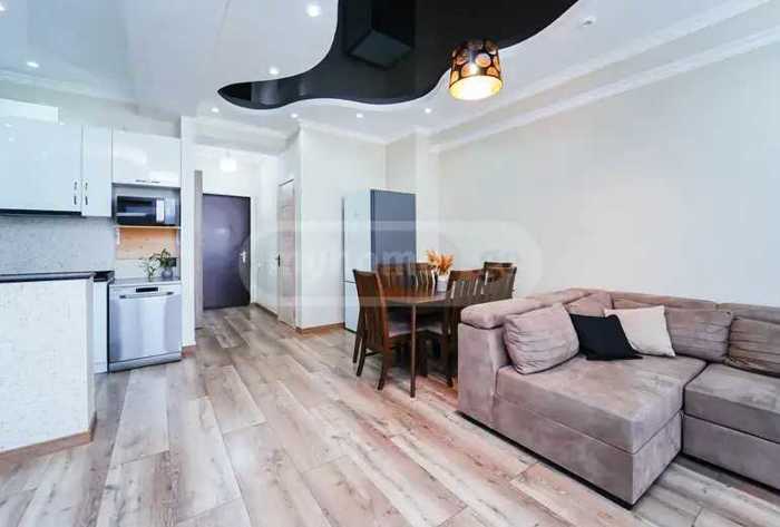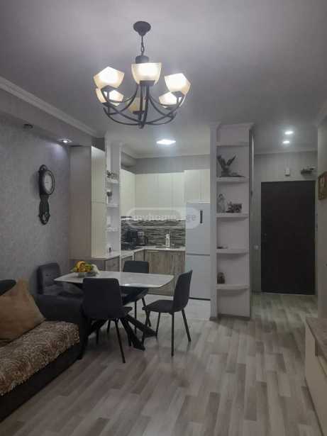 A 60 sq.m. studio-type apartment is for sale in a newly built building within the "Green Dighomi" complex, partially furnished and equipped. It has 2 bedrooms, one of which has supplementary lighting. $115,000