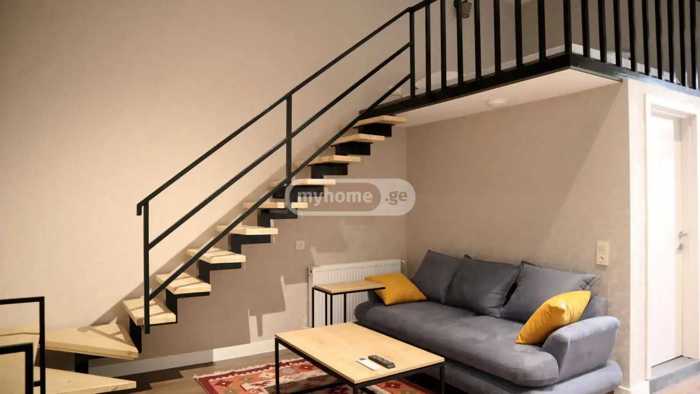 For sale: 105 sq.m. 3-room attic type apartment with 2 bedrooms. Located at D. Aghmashenebeli Avenue 86 / Marjanishvili Square. An ideal option for renting: air conditioning and a TV in every room. The elevator goes up to the 5th floor.