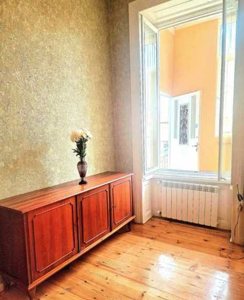 For sale: a 3-room bright apartment at 40 K. Marjanishvili with an isolated kitchen, 76 sq.m. It is possible to utilize the attic and make a duplex. The entrance is from both Marjanishvili street and the yard. The apartment is good for both living and commercial use.