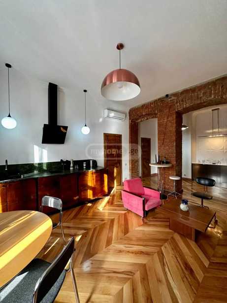 An operational business is urgently for sale at one of the most touristically busy locations. Renovated 5-room apartment with high ceilings and a private balcony. The apartment includes 1 large living room, 2 bedrooms, an office, and a dining room. Living area is 141.48 sq.m, registered attic is 118 sq.m and basement is 13.39 sq.m. It has an entrance from the yard (by car from Ninoshvili Street, also on foot from Javakhishvili Street).