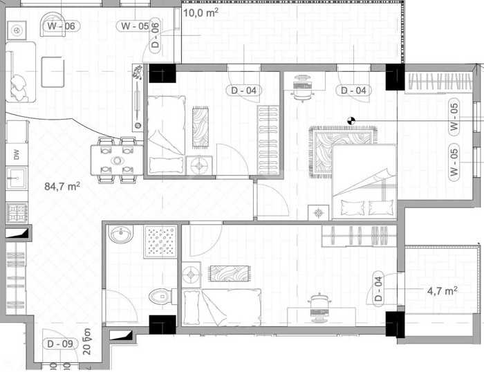 For sale: a bright and cozy apartment of 130 sq.m. with 2 bright bedrooms and balconies. The apartment has an extension of 27 sq.m. from the kitchen side. The building was constructed in the 2000s. If interested, please contact me.