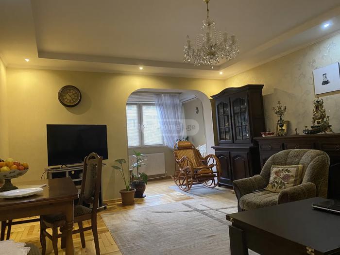 For sale apartment in Varketili 3 a. 326 k. renovated with central heating and air conditioning, 2 bedrooms, a small balcony, and a large hall. The sale of a well-equipped garage and basement is also considered.