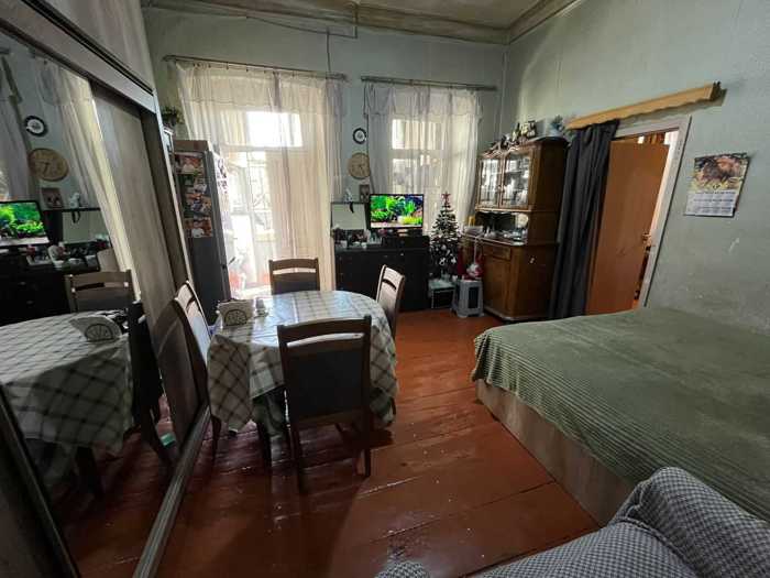 A 2-room apartment is for sale on the third and top floor at 3 Kosta Khetagurovi Street, near St. Nicholas Church, in the Italian courtyard. (without furniture) It has a separate balcony and bright rooms with high ceilings. Good location and a good option for making apartments. Entrance from the street side (from the entrance).