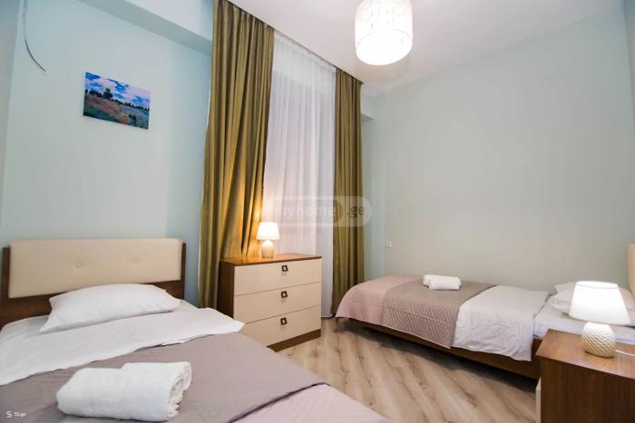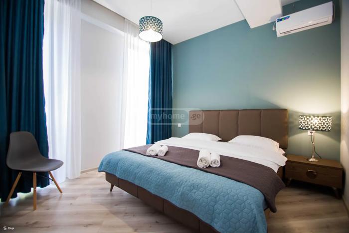 For sale is a 60.4 m² apartment, newly built, on Ketevan Dadiani Avenue in Tbilisi. The apartment is newly renovated, with a modern design and all necessary comforts. The location stands out for its good location and developed infrastructure. If interested, please contact me at the number specified in the ad. The apartment is located on the 2nd floor, above the "Carrefour" supermarket, with a studio-type living room, 2 bedrooms, and central heating. The apartment does not have a balcony. One bedroom has a comfortable Kingsize bed (2 m * 1.8 m) with a high-quality mattress, a nightstand, a torcher, and 2 windows (tilt and turn type, full height) overlooking Ketevan Tsamebuli Avenue, with a mosquito net, heating radiator, and air conditioning. The window in the second bedroom (tilt and turn, with mosquito net) overlooks a blind wall of the neighboring building, which is 1.5 meters away. The bedroom does not require secondary lighting. The bedroom features 2 single beds (2 m * 1 m) with comfortable, high-quality mattresses, a nightstand, a commode, a heating radiator, and a fan. The living room has an area separated for relaxation, with a large window (tilt and turn type, full height) with a mosquito net overlooking Ketevan Tsamebuli Avenue. There is a pull-out corner sofa, an IP TV, Magti internet, a low table, a heating boiler in the closet, a heating radiator, and air conditioning. The corner kitchen is fully equipped: gas stove with a hood, dishwasher, refrigerator, washing machine, microwave, and sink with hot and cold water. The dining table is for 4 chairs, with a small work table and a heating radiator. There is a 5-section wardrobe by the entrance door (middle section with mirror) and an additional single-section wardrobe. Each area has its own lighting. The bathroom-toilet has cold and hot water, quality fixtures (toilet, sink, mirror), shower cabin, dryer, hood, and hairdryer. The building is located 200 meters from metro 300 Aragveli, between "Yandex taxi" and "MBS capital". The bus stop is in front of the building. The entrance hall is tidy and well-kept, with a video surveillance system, electronic key (uses a chip), intercom, and elevator.