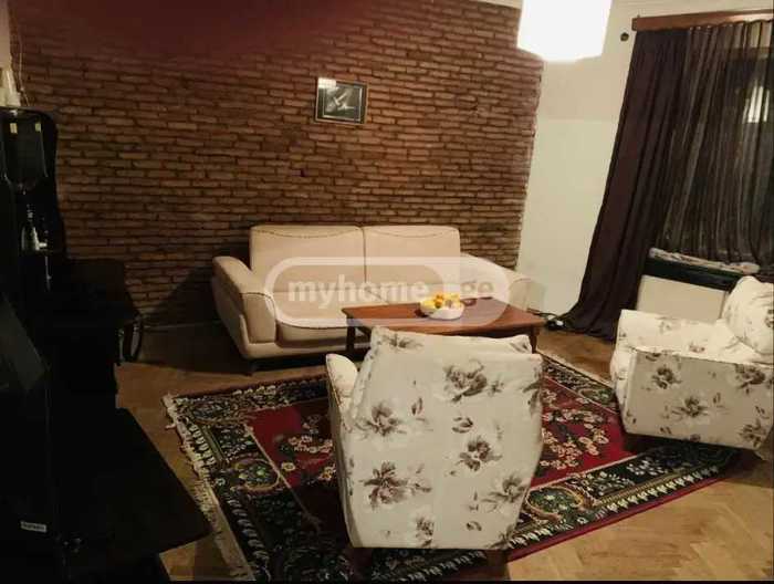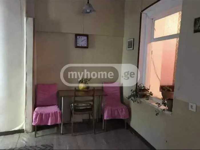 A flat is urgently for sale in the Italian yard in Vera. The house is not dilapidated and has thick strong walls. There are 3 tenants in the yard. The yard has a shared balcony, and the ceiling height is 2.80 m. There is a studio of 18 sq/m in the entrance and 2 more rooms, one with secondary lighting. The flat has old renovation. It is on the 2nd floor from the street, but from the yard, it is the first floor. There is a semi-basement below the flat where people live, so there is no dampness in the flat. The Bank of Georgia appraised it at $80,000 a month ago. It is for sale for $77,000, and the price is negotiable with a serious buyer.