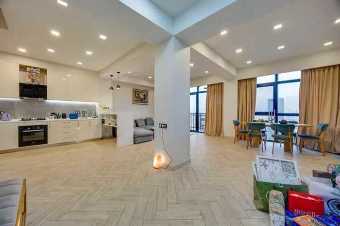 For sale is a newly built, ideal project apartment at 6 Jghenti Street in Saburtalo, a 10-minute walk from Metro Vazha-Pshavela and Vazha’s monument. The apartment features a premium quality kitchen. It has three balconies (one French), from which beautiful views unfold. All necessary facilities are around, and the bus stop is a 2-minute walk away. The apartment is uninhabited. The building has security and a large parking space.