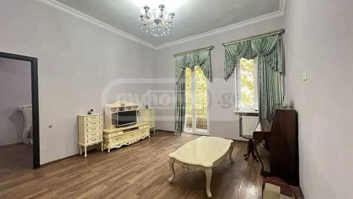 Apartment for sale in the city center at Vera. M. Kostavas N13. Featured facade, solid/no mortgage building. - The house has a 150 square meters yard. - 2-minute walk from Rustaveli Metro, Philharmonic, and Vake Park. - It has an entrance from both Kostava Street and Kobakhidze Street.