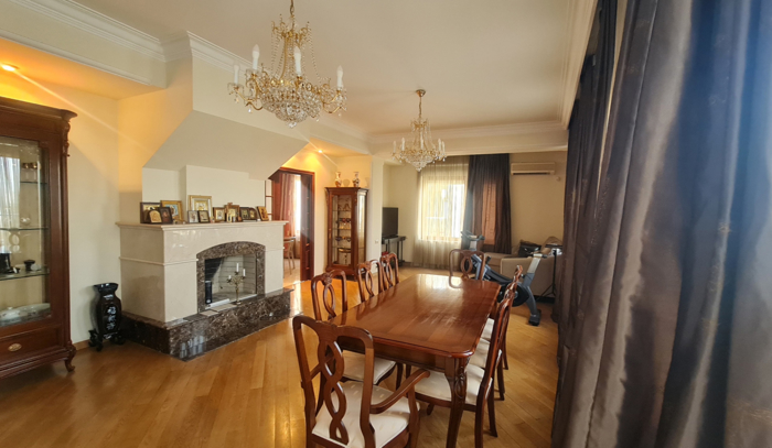 For sale: 7-room triplex, 540 sq.m. in a newly built building, 3 bedrooms on Petriashvili St., 8/9 floors, furnished, equipped with appliances, balcony, fireplace, swimming pool, central heating, $1,700,000.