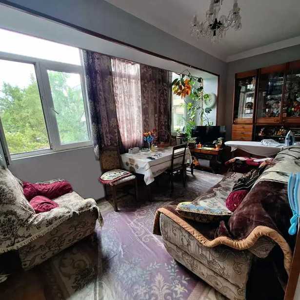 For sale is a 3-room apartment in a city project, located on the 3rd floor of an old constructed building. It has two bedrooms, a large living room, a loggia, a balcony, a storage room ("chulani"), parking space, and a basement. Newly renovated. Located in a quiet and green area.