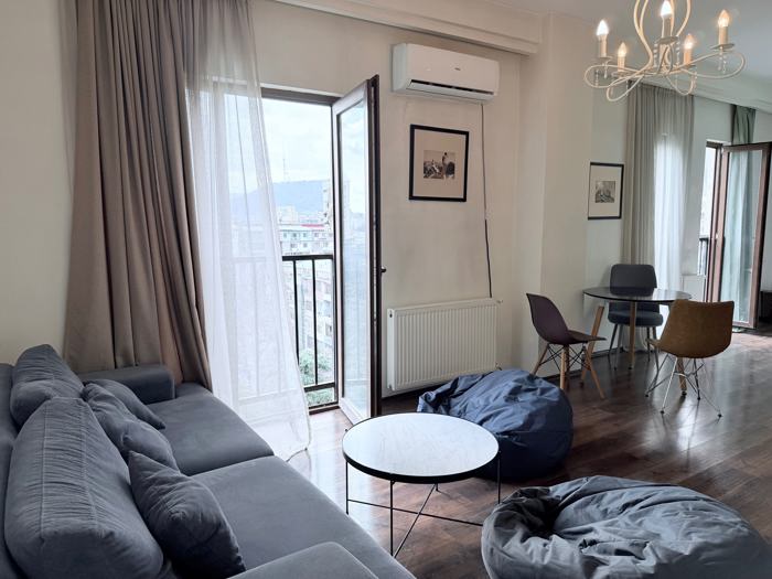 For sale is an apartment in the central district of Tbilisi, in a prestigious location, just a few minutes from the metro stations. The apartment features a functional layout: it has two balconies, two bathrooms, and two fully equipped kitchens, making it ideal for both living and office use.