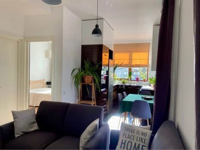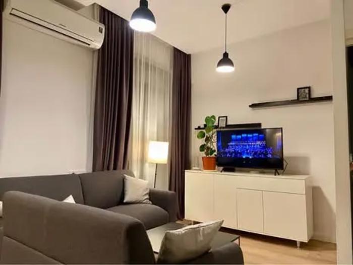 For sale is a bright and cozy two-room apartment with a studio-type living room and a large veranda, in a newly constructed building, in Saburtalo, near the "Black Opal" casino, in 15-minute walking distance from the subway stations 'Medical University' and 'Technical University', as well as - from Carrefour Hypermarkets of Tsintsadze and Gamrekeli streets. The apartment is fully furnished with high-quality appliances: heating boiler, air conditioner, TV, refrigerator, gas stove and oven, washing machine and dishwasher, as well as furniture for the living room, kitchen, bedroom, and veranda.