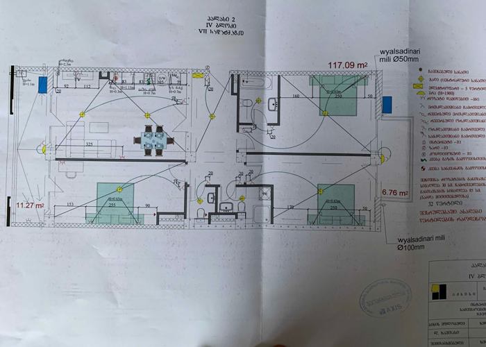 For sale: a 233m2 green frame apartment on Saburtalo, on Tsintzadze Street.