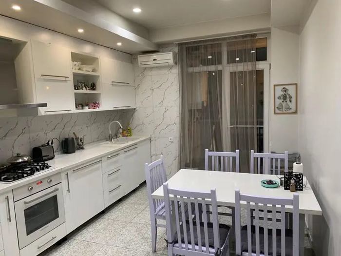 In Saburtalo, on S. Tsintsadze St. N36, a three-room apartment is for sale, area 130 sq.m. with furniture and appliances, two bedrooms, an isolated kitchen, modern renovation, beautiful views, central heating, and air conditioning. I will leave everything that is in the photos in the apartment. The apartment has an additional 100 sq.m. area of privatized attic, where a duplex or a separate apartment can be arranged. Price - $150,000.