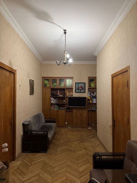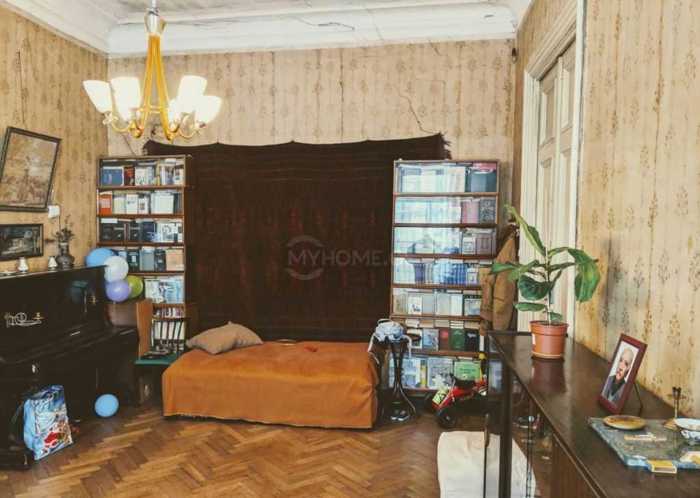 For sale in Mtatsminda on Griboedov Street near Rustaveli Metro, a 3-room high-ceiling apartment with 1 bedroom (a second bedroom can be made), a living room, a separate kitchen, and 1 bathroom. With an active fireplace, it is also possible to arrange a mezzanine, built-in shelves, and a wardrobe.