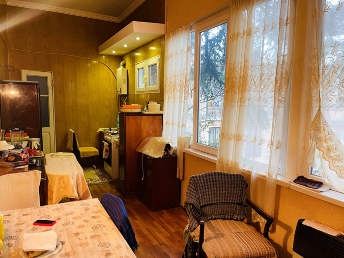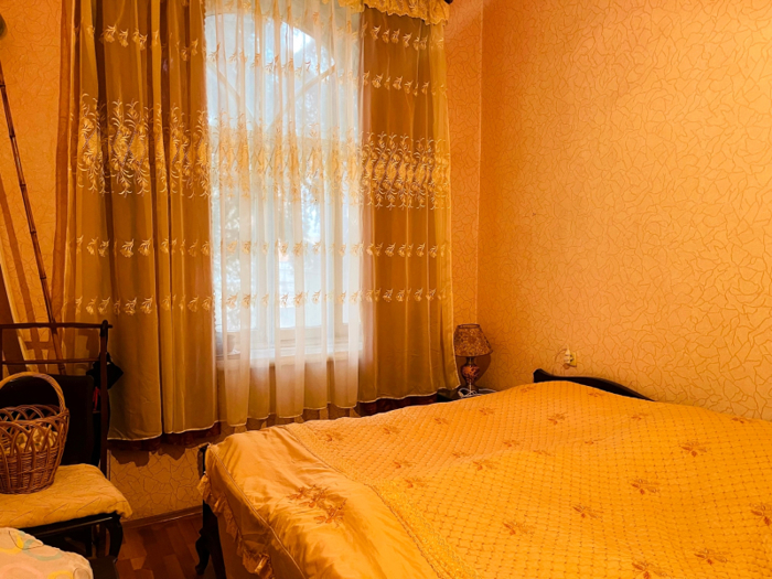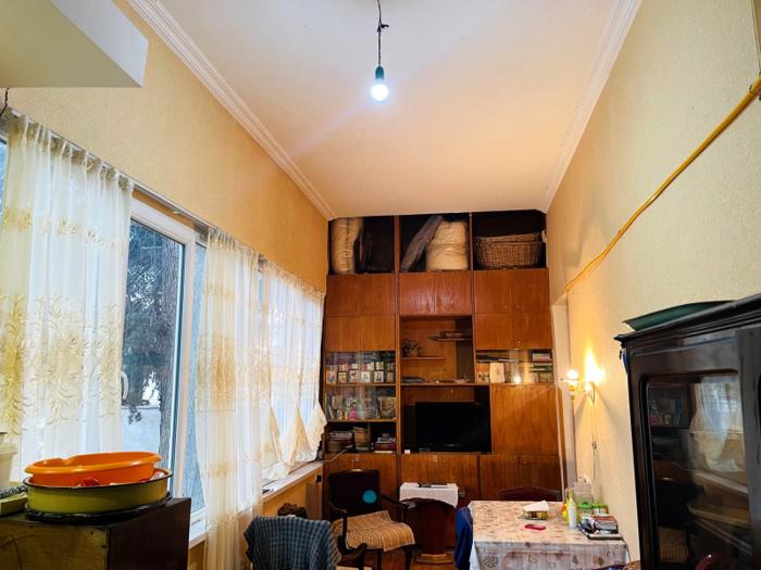 For sale is a 3-room apartment in Mtatsminda (Griboedov St.) on the 4/5 floor of an old built building (with a lift). The apartment is a corner, through, and has an old renovation. Area 124 sq.m.: living room, kitchen, 2 bedrooms, 2 bathrooms, balcony. The house has two yards. Price $250,000.