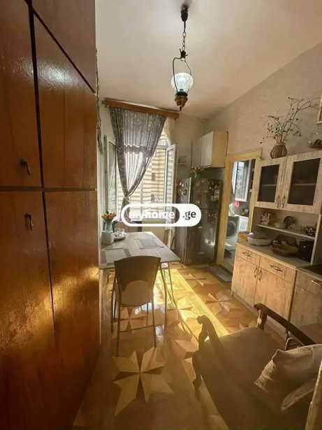 A flat for sale on Tabukashvili Street, behind Rustaveli Theatre, with a total area of 86 square meters. The flat includes 2 bedrooms, a living room, a separate kitchen, and a wet point. It has a beautiful balcony and high ceiling.