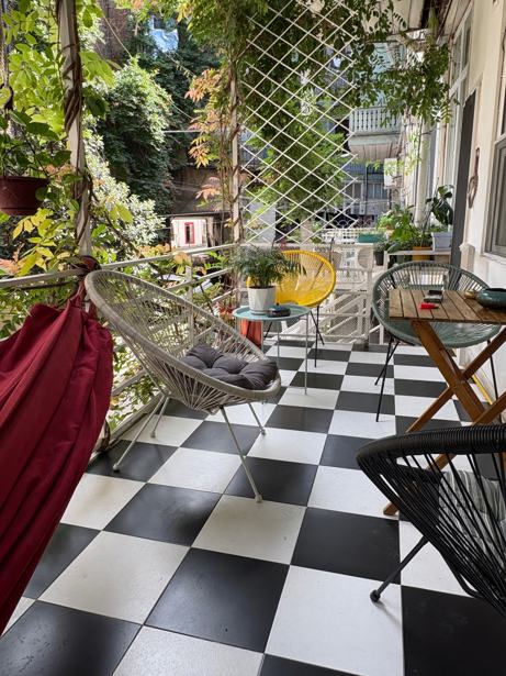 Urgently! The price has dropped and it's the last one! A flat is for sale on Mtatsminda, I am the owner and I no longer collaborate with agencies! Behind the Conservatory, in a peaceful and green yard. Features: area - approximately 120 m² 4 rooms: large living room, 3 bedrooms, 2 green balconies, well-furnished interior. The apartment is historical and previously belonged to a famous public figure – Kereselidze, which gives it uniqueness and additional cultural value. A cozy yard in the center of Tbilisi, a central yet quiet location and the structure of the apartment allows it to be used for both residential and commercial purposes. View of the yard.