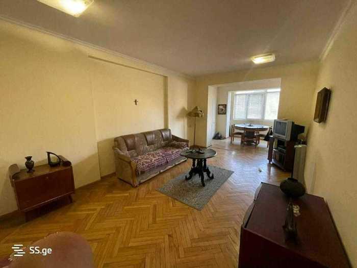 A 108 square meter 3-room bright cozy apartment is for sale on D. Kipiani Street (formerly Didube Street) with a basement of 12 square meters. It has oak doors and windows and parquet flooring. If desired, it is easy to add at least one more bedroom. Ideal location: two steps away from Metro Tsereteli, supermarkets, pharmacies, school, kindergarten, Mushtaidi Park, market, with a barrier-controlled yard. Space for parking a car. It can be used for both living and as commercial and office space. I am the owner!