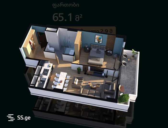 For sale is a 2-bedroom studio apartment near Samgori metro, 4 minutes' drive from a new residential complex "Samgori Tower". The complex has 23 floors, where both residential and commercial office spaces are planned. The project features a large closed and secure yard of 4500 sq.m, where areas for children's entertainment and relaxation are planned, as well as 2-story underground parking and high construction standards. You can purchase an apartment in the project with an extended internal installment plan tailored to your payment schedule until the completion of construction.