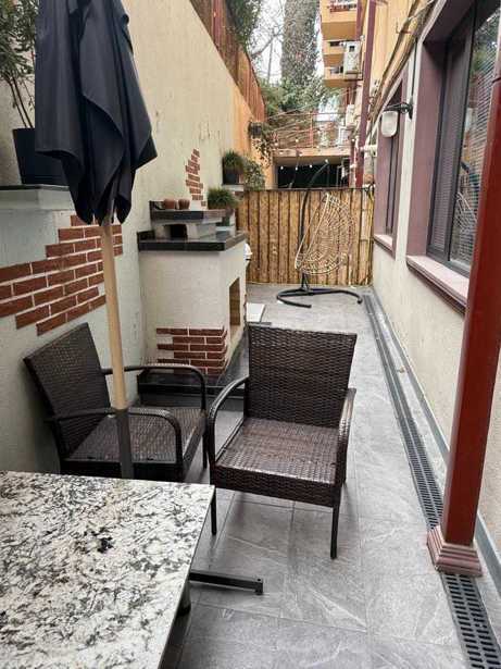 In one of Tbilisi's prestigious neighborhoods, Vake, a two-story apartment is for sale on a quiet street. Ideal location! Within walking distance: the best restaurants, shops, museums, theaters. Layout: 1st floor - living room, dining room, separate kitchen, bedroom, bathroom, loggia, balcony. 2nd floor: 3 bedrooms, large bathroom, balcony with beautiful views of the city. The basement of 7 sq.m. is located on the first floor of the building, with a window facing the street - it can be used commercially (not included in the price). The apartment is well-equipped with all necessary appliances.