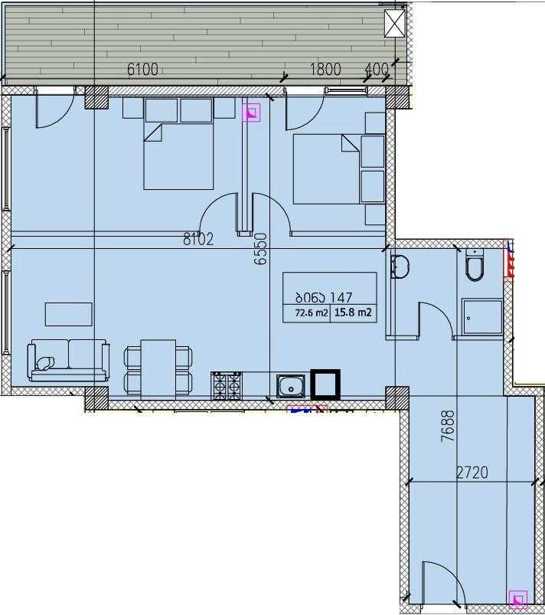 For sale: a 3-room apartment in the Eco Dighomi complex on Bob Walsh Street in black frame condition. Living area 72.5 sq.m, veranda area 15.8 sq.m. Aluminum windows are installed. The complex includes a project with 4 buildings (6 and 8 stories). A well-equipped landscaped rooftop fitness area. 5,000 m2 indoor car-free yard. Football field, bike path, separate designated area for walking dogs, barbecue zone. You can already start renovations. Currently, infrastructure finishing is in progress. It will be completed in August.