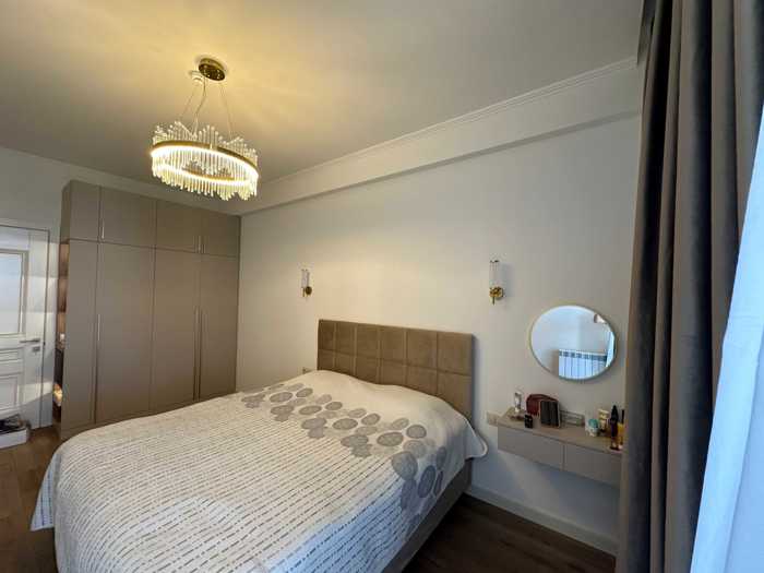 |For sale is an apartment in a newly constructed block on Nutsubidze Plateau. The apartment has 2 bedrooms, 2 bathrooms, a dressing room, a balcony, and a studio-type living room. I do not cooperate with agencies, do not call me.