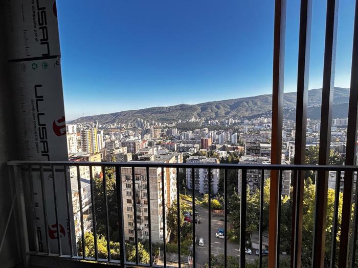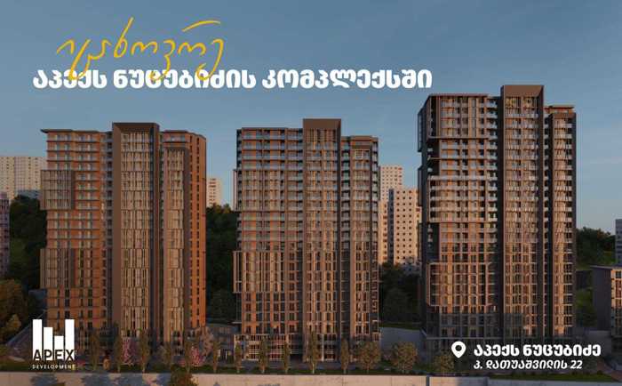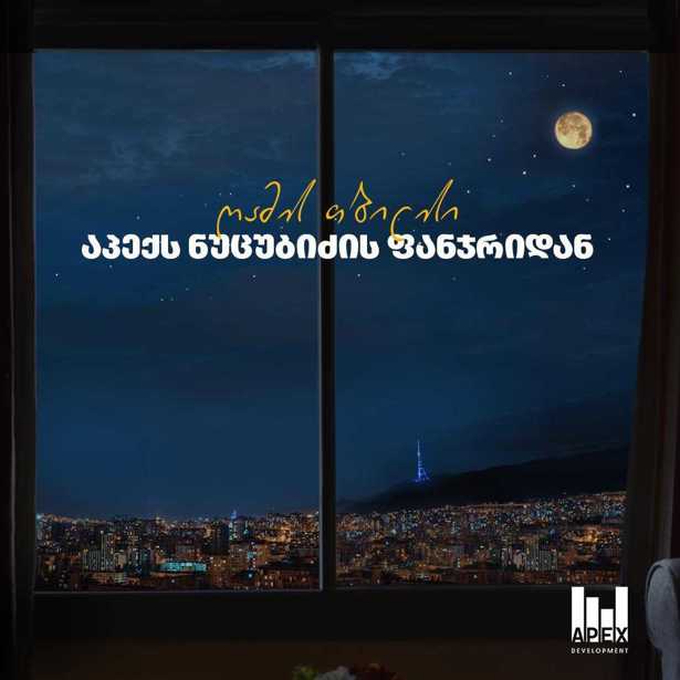 A premium quality under-construction apartment is for sale in Apex Development (Nucubidze's project). Completion is at the end of May. The apartment is for sale in a white frame condition. It is bright, with a beautiful view of the entire city, which no other construction can cover.